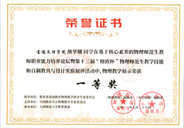 7月,best365英国体育在线研究生参加第十三届“格致杯”全国物理师范生教学技能展评活动,取得优异成绩,公司获优秀团体奖。