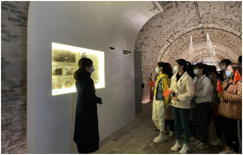 活动初始,本科生支部书记周小玄带领全体党员及预备党员重温入党誓词,全体党员庄严地向党旗宣誓,表达了对党崇尚的敬仰。随后,在博物馆讲解员的引导下,大家依次参观了窑洞工厂、薄壳车间、乐农别墅以及申新纱厂办公楼。遗址公园真实而全面地反映了中国共产党领导下中华民族和中国人民抗击外侮的历史,有助于员工党员增强国家观、民族观,培养家国情怀,了解现代西北地区轻工业发展史。