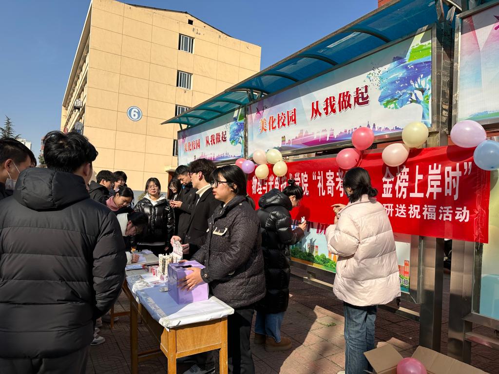 2024年全国硕士研究生考试在即,为落实立德树人根本任务,增强考研学子备考信心、调整备考心态,为考生蓄能助威,12月19日中午,best365英国体育在线团总支于石鼓校区一食堂门口举行“礼寄考研路,金榜上岸时”考研送祝福活动。80余名考研学子参与了活动。